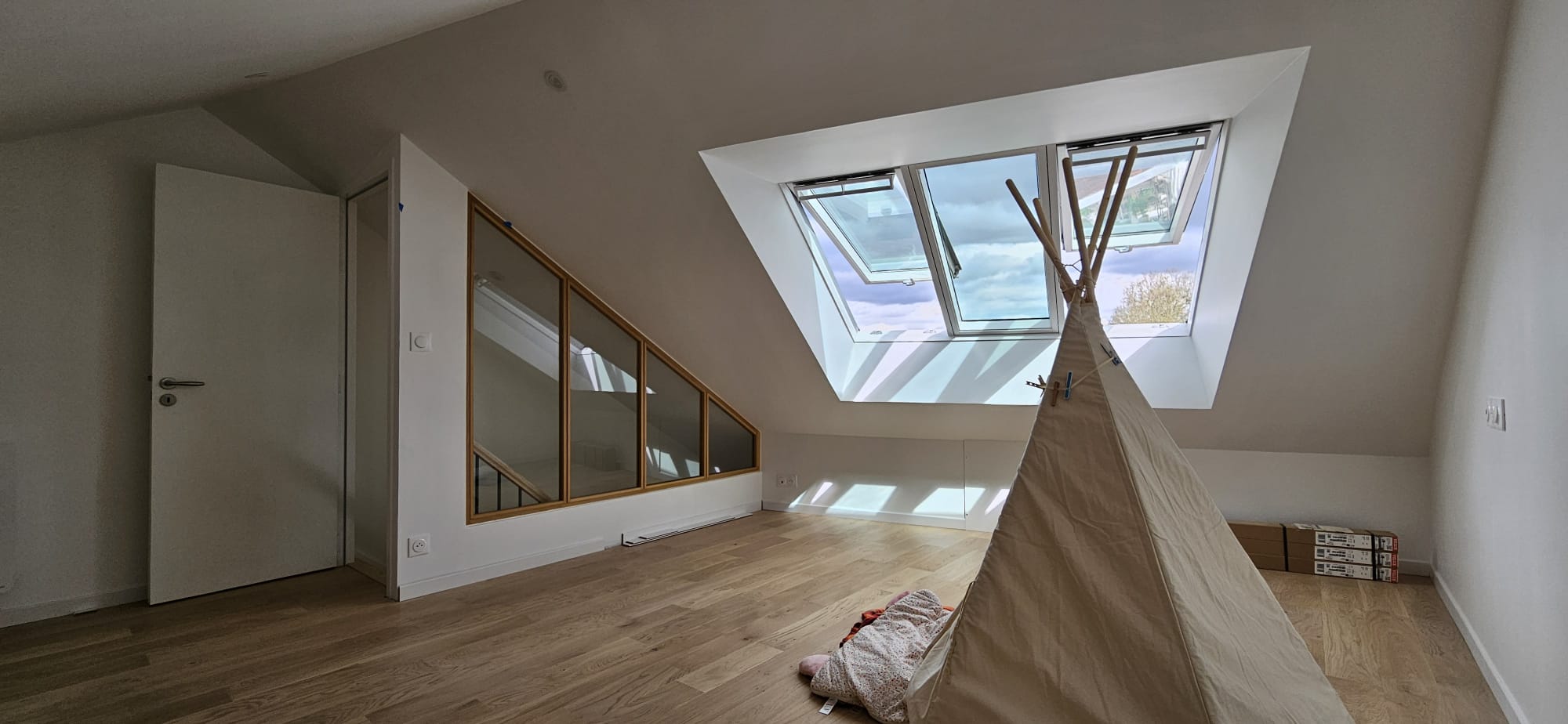 L’aménagement de combles est la solution idéale pour transformer vos espaces perdus en un véritable nouvel étage. C’est un projet de rénovation qui valorise votre maison. Nous sommes experts pour aménager cet espace, vous permettant un gain de surface et un confort de vie amélioré. Notre équipe est à votre disposition pour concrétiser votre projet d’aménagement de combles et vous donner des idées.